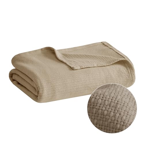 Madison Park Freshspun basketväv lyxig bomullsfilt kaki 108 x 90 king size basketväv premium mjuk mysig 100% bomull för säng, soffa eller soffa