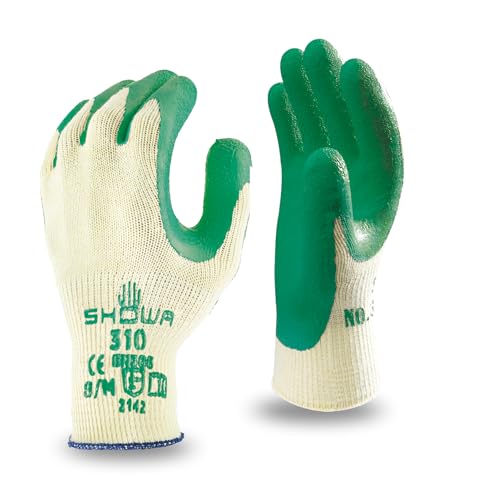 SHOWA Gauge polyester bomullshandskar med latexbeläggning på insidan, 9/Large, GRÖN, 1