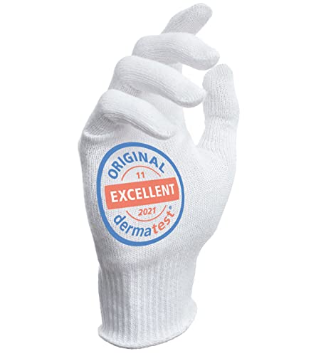 WELL B4 Care bomullshandskar, skyddshandskar av bomull med antibakteriellt silver, mjuka trikåhandskar, 1 par, vit/vit-silver, 1 par vit S