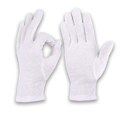 VIDSTW 3 par vita bomullshandskar, vita mjuka tyghandskar, bekväma och andningsbara bomullshandskar, arbetshandskar för smyckesrengöring, silver- eller fotokontroll, Vit, Taglia unica