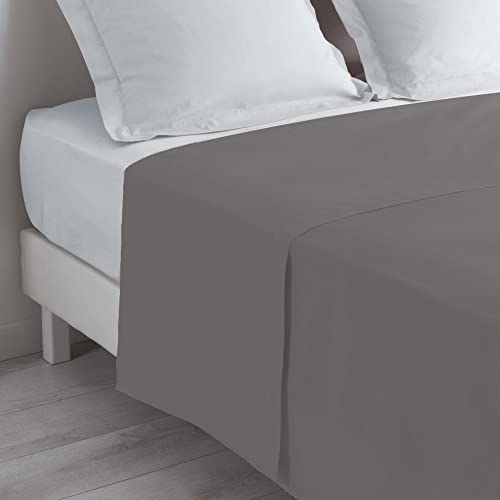 Douceur d'Interieur enkelt bomullslakan + 57 trådssängstygn 180 x 290 cm Gris Souris