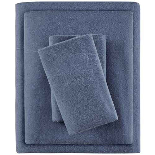 True North by Sleep Philosophy Mysig flanell varmt 100% bomullslakan – nyhetstryck djur stjärnor söt ultramjuk kallt väder sängkläder set, tvilling, blå solid 3 delar
