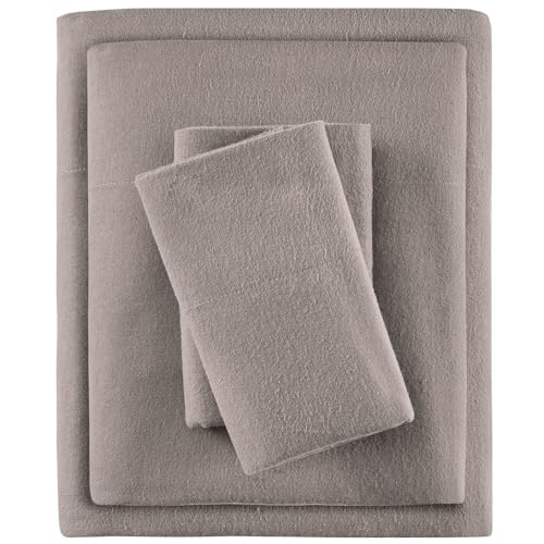 Sleep Philosophy True North mysig flanell varmt 100% bomullslakan - nyhet tryck djur stjärnor söt ultramjuk kallt väder sängkläder set, tvilling, grå solid 3 delar
