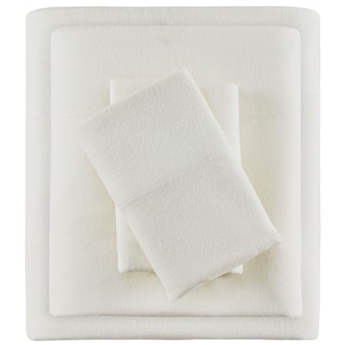 Sleep Philosophy True North mysig flanell varmt 100% bomullslakan - nyhet tryck djur stjärnor söt ultramjuk kallt väder sängkläder set, full, elfenben solid 4 delar