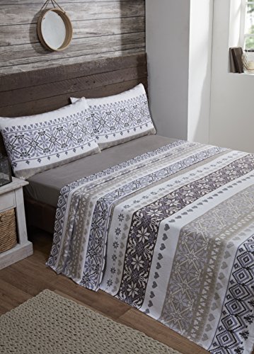Rapport Fairisle 100% borstat bomullslakan, enkel naturlig