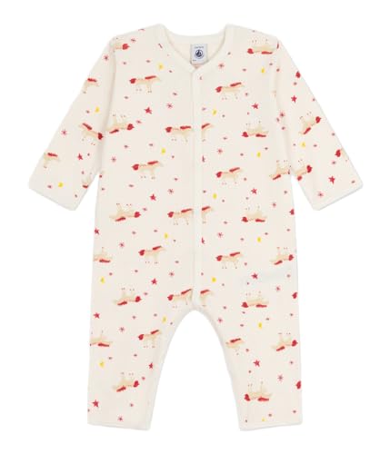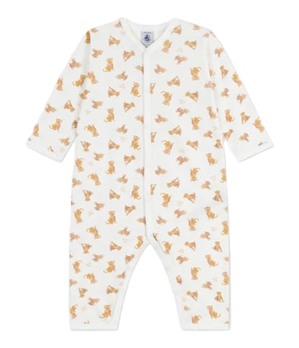 Petit Bateau Fötterlös bomullspyjamas med tryck, Marshmallow/cashew, 6 mois