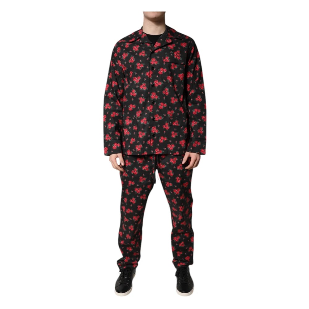 Dolce & Gabbana, Nattkläder , Herr, M, Bomull, Svart bomullspyjamas med blommigt tryck