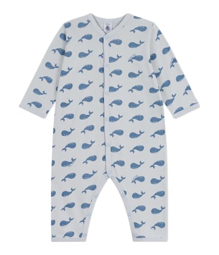 Petit Bateau Fötterlös bomullspyjamas med tryck, Co2/Adriatic, 6 M�nader