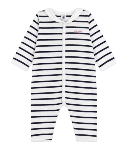 Petit Bateau Fötterlös bomullspyjamas med randig tryckt båthals, Marshmallow/rökning, 3 mois