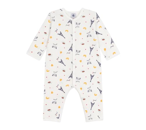 Petit Bateau Fötterlös bomullspyjamas Paris tryckt, marshmallow/multico, 3 mois