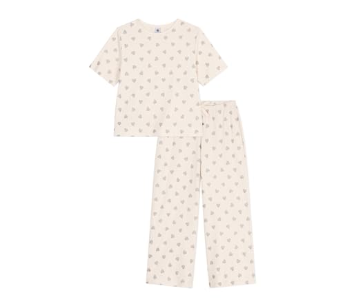 Petit Bateau Bomullspyjamas för kvinnor, kortärmad, breda ben, hjärttryck, Squaw/Marshmallow, M