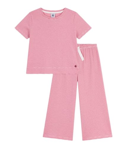 Petit Bateau Kortärmad bomullspyjamas för barn med breda ben med ränder, Peonia/Marshmallow, 10 �r