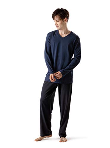 DAVID ARCHY Långärmad bomullspyjamas för män och byxor med fickor, mjuka och bekväma, Överdel: mörkblå + byxor: svart, XXL
