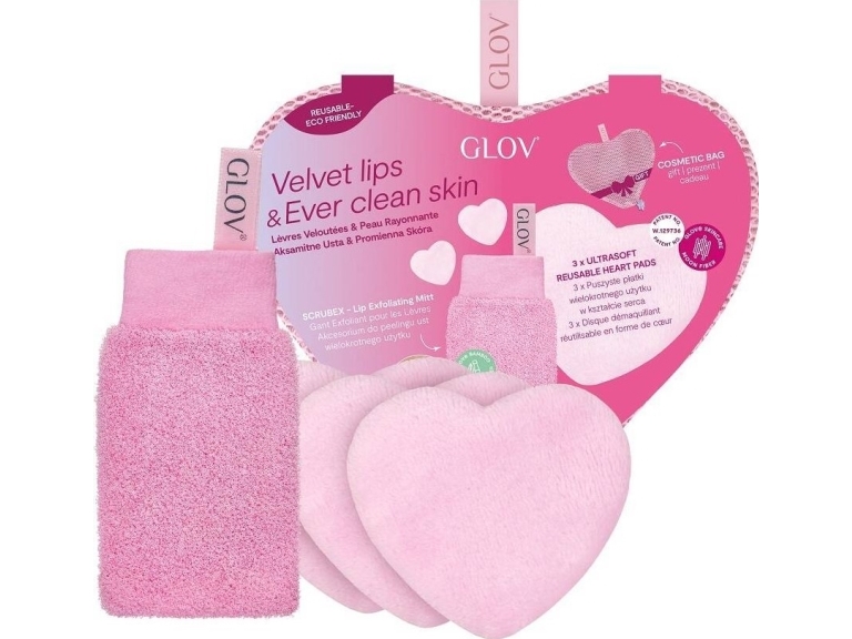 Glov Lips &Amp Ever Clear Skin Läppskrubbhandske + Hjärtformade Återanvändbara Bomullsrondeller
