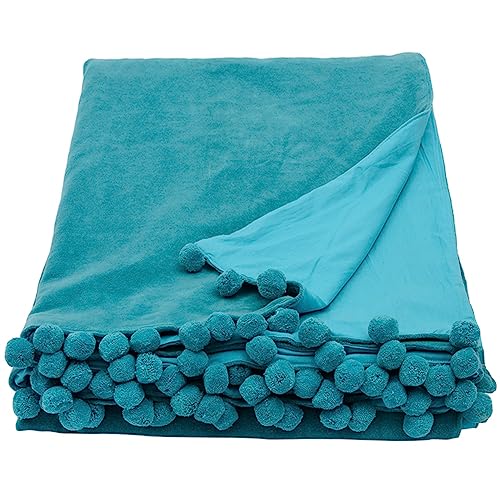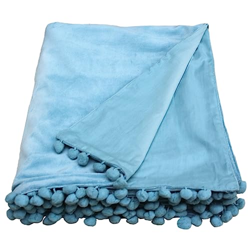 Ragged Rose 140 cm x 180 cm överkastfilt – pom pom överkast tillverkat av bomullssammet med pompom kanter på sidor – mångsidig bomullssammetsfilt för soffa och säng