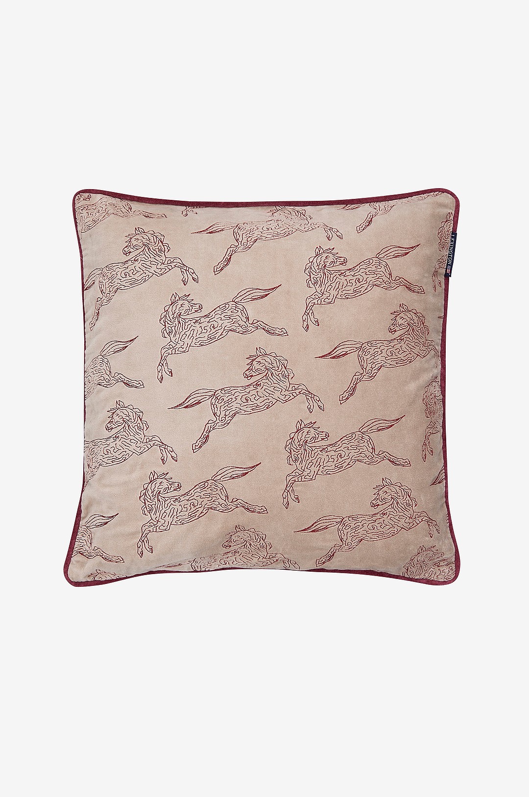 Lexington - Hästar Kuddöverdrag i bomullssammet - Beige