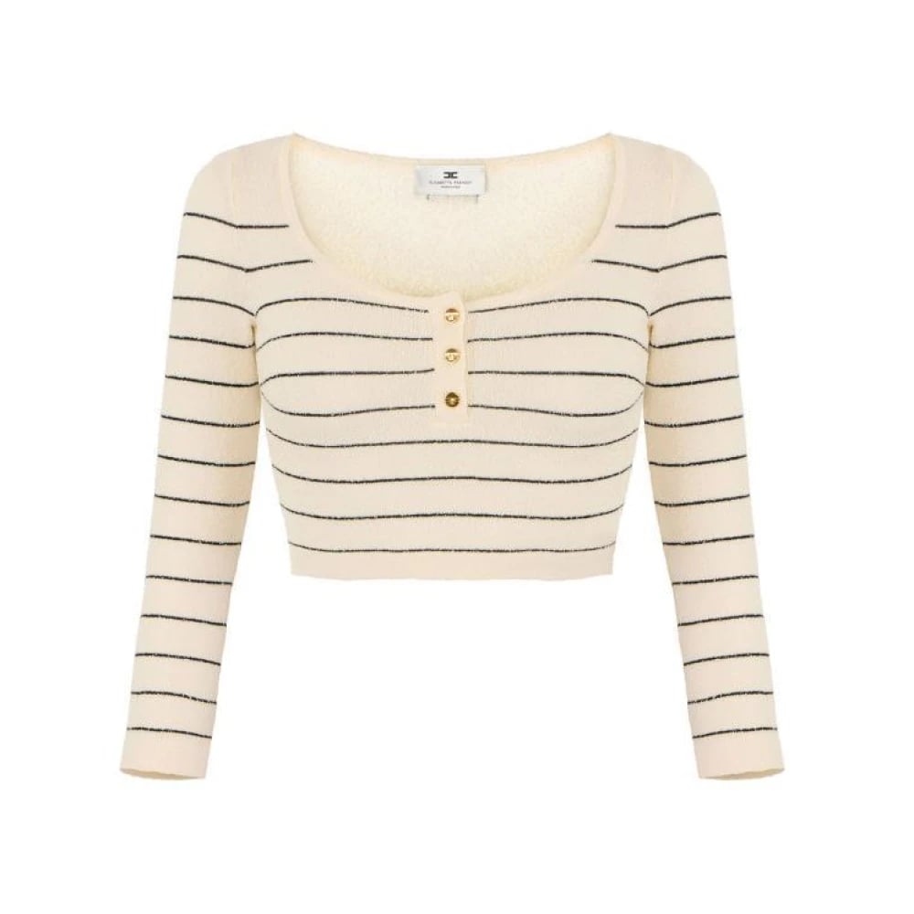 Elisabetta Franchi, Stickade Tröjor , Dam, S, Bomull, Randig crop top i bomullstråd