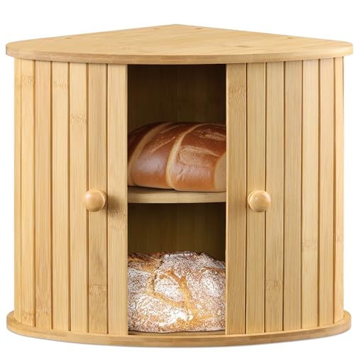 Navaris Brödlåda i trä – bänkskiva kök bondgård hörn trä brödlåda behållare med skjutdörrar – 30 x 30 x 31 cm (11,81 tum x 11,81 tum x 12,20 tum)