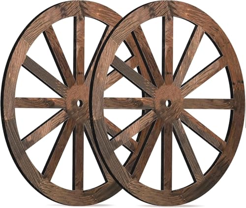 Ltstor 2 st väggdekoration i trä för hjul, 30 cm trähjul vägg dekor hänge retro stil hjul väggdekor hänge lämplig för bondgård bar garage trädgård