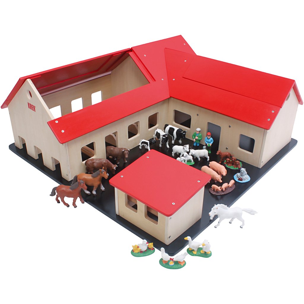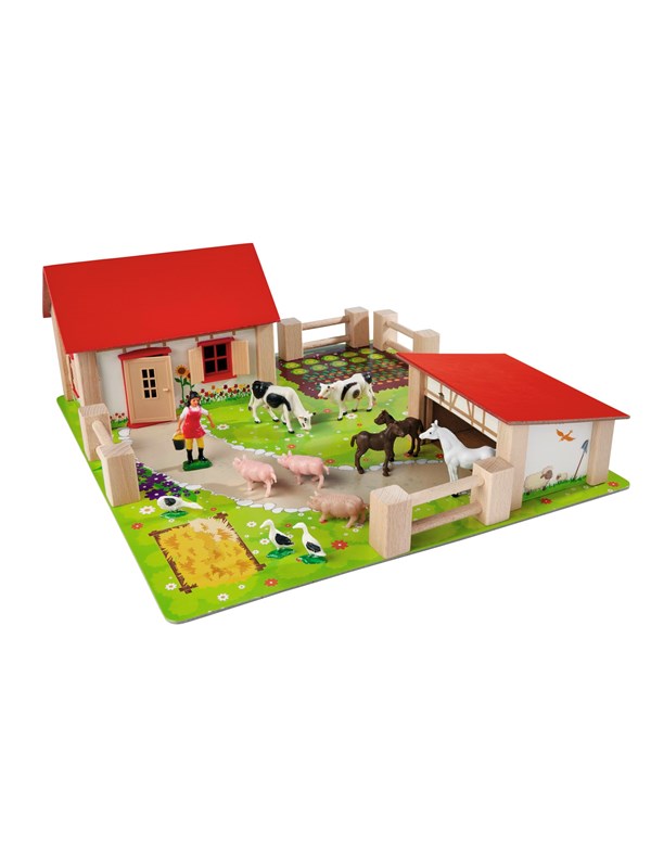 Bondgård i trä m. djur, stl. 60x60x25 cm, 24 st./ 1 set