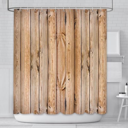 AIBIIN Duschdraperi i trä bondgård rustik lantlig träplanka väggdekor badgardiner med 12 krokar heminredning vattentät landsbygd badrumsgardin 180 x 180 cm