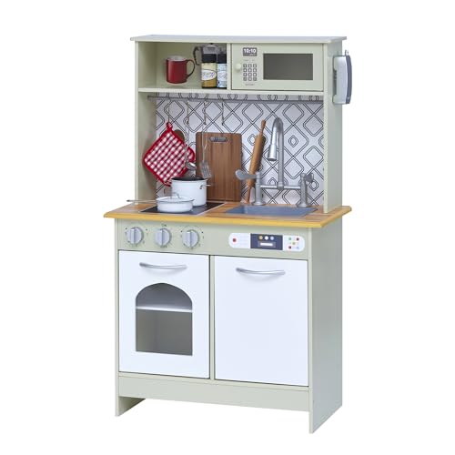 Teamson Kids Little Chef Boston modern bondgård trä kök lekset med interaktiva funktioner och 9 lek matlagningstillbehör, ljusgrön/vit TD-12679D