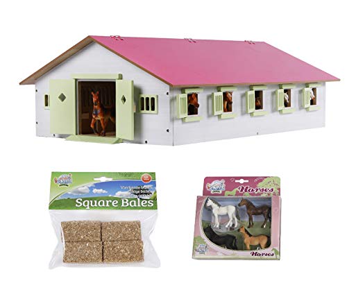 Kids Globe Horses hästhotell (erbjuder plats för 12 hästar, skala 1:24, hästhotell, barnbondgårdstillbehör, leksak bondgård, hästleksak) 610308