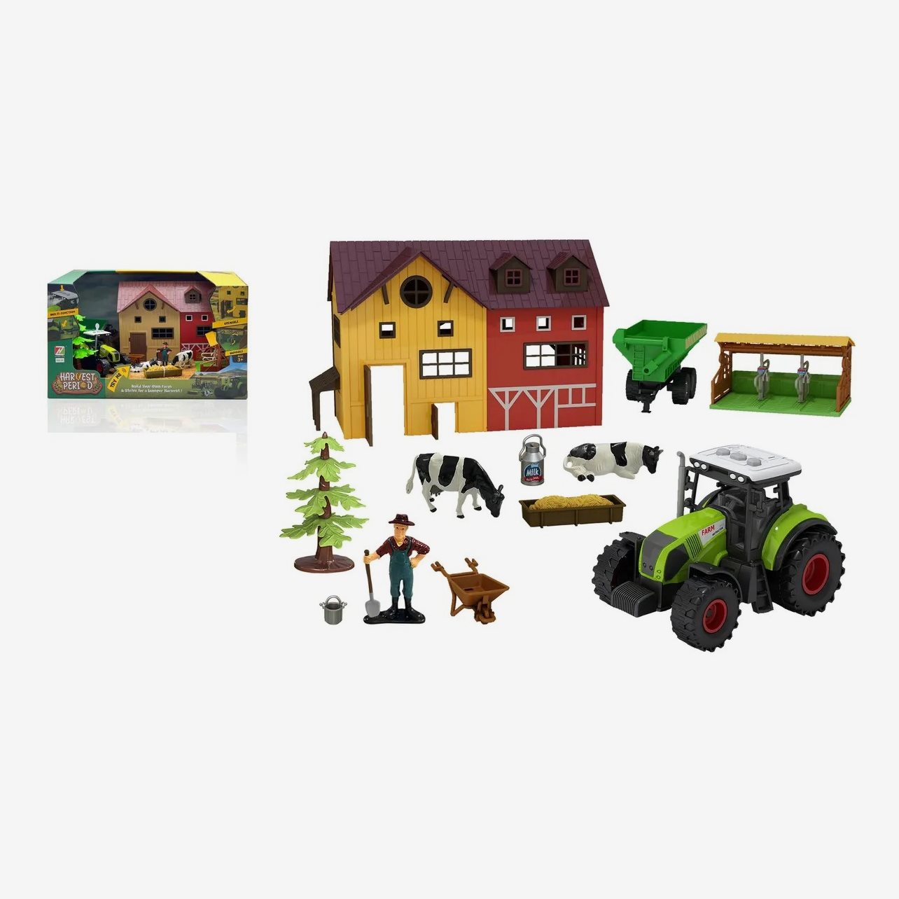 Stor bondgård med djur och traktor, 49 delar