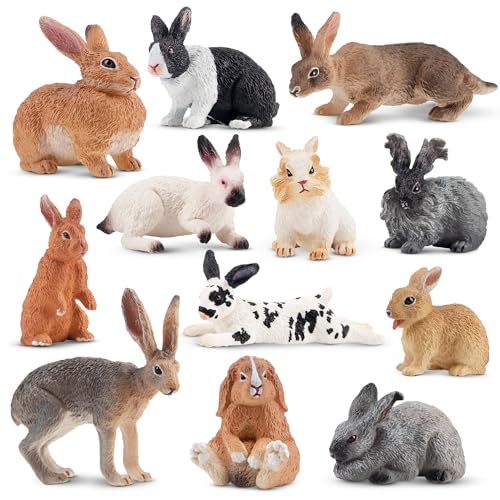 TOYMANY Påskharar/djurfigurer/kaninfigurer, 12 stycken, bondgårdsdjur, hare, modell, leksak, till jul och födelsedag, dekorationer, present, tårtdekoration, för fest, omtyckta av barn och småbarn