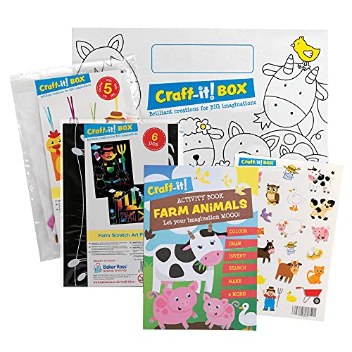 Baker Ross CBS020 Bondgårdsdjur barn konst och hantverk pack - två roliga kreativa kit, klistermärken och en aktivitetsbok för pojkar och flickor