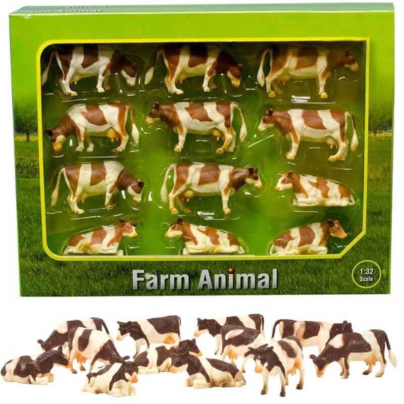 Bondgårdsdjur 12 st. kor SRB rödbruna med vita fläckar 1:32 Kids Globe