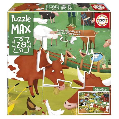 Educa - MAX-pussel för barn med rolig bild av bondgårdsdjur 28 stora bitar, lätt att manipulera och passa. Perfekt för golvridning. (19955)