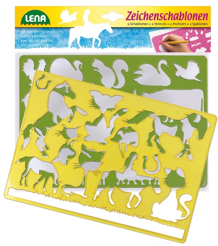 Lena 65767 – Ritschabloner uppsättning med 2 hästar/katter och bondgårdsdjur, 2 stenciler och färgmallar med djurmotiv, målarstenciler vardera ca 26 x 19 cm, måleriset djur för barn från 3 år