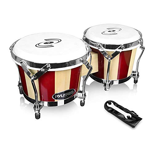 Pyle Hand Crafted Bongo Drums - Pair of Wooden Bongo Drums, 6.5 & 7.5 Inch - PBND10