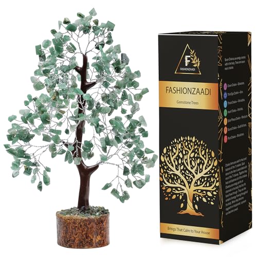 FASHIONZAADI Green Aventurine Gemstone Chakra Bonsai Tree Healing Crystal Chakra Trees Reiki Stone Goodluck Chakras Crystal Home Office Living Room Table Decor Gift Size 10-12 Inch (Silver Wire)