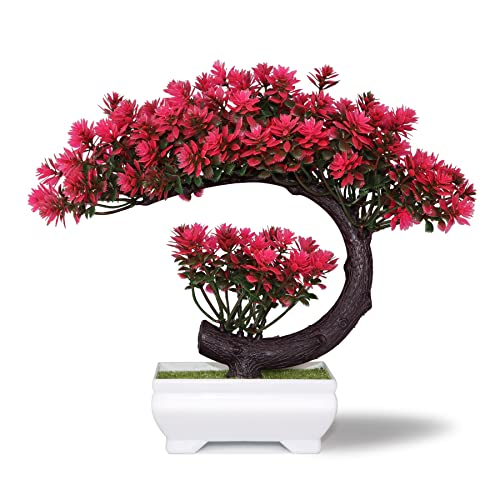 yoerm Små falska växter – plast konstgjord bonsai träd magenta för hem sovrum vägghylla kontor skrivbord bondgård rumsdekor, lång 21,5 cm