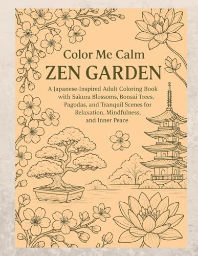 Color Me Calm : Zen Garden: A Japanese - Inspired Adult Coloring Book with Sakura Blossom ,Bonsai Tree ,Pagodas , and Tranquil Scenes for Relaxation , Mindfulness , and Inner Peace