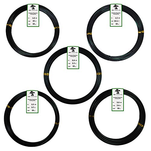 Grow A Bonsai Tree anodiserat aluminium bonsai träningstråd 5-storlek startset med canvasväska – 1,0 mm, 1,5 mm, 2,0 mm, 2,5 mm, 3,0 mm (147 fot totalt) – välj din färg (5 storlekar, svart)