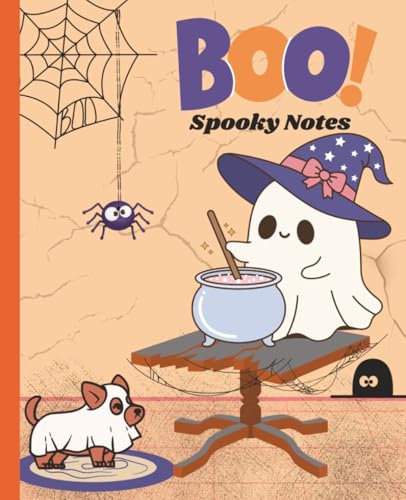 Composition Book: Boo! Spooky Notes: Cute Ghost and Dog Halloween College Ruled Notebook/Ghost Background on Pages/Black Cat in Purple Witch Hat ... Pages/Holiday Fun: Boo! Spooky Notes