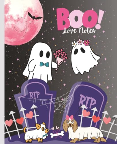 Composition Book: Boo! Love Notes: Cute Pink, Purple, and Black Ghost and Dog Valentine College Ruled Notebook/Ghost Background Pages/Cute Ghost on ... Pages/Holiday & Everyday Fun: Boo! Love Notes