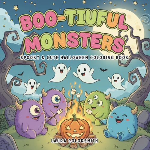 Boo-tiful Monsters - Spooky & Cute Halloween Coloring Book: Fun and Easy Halloween Coloring Book Featuring Adorable Monsters, Haunted Houses, Pumpkins, and Bats
