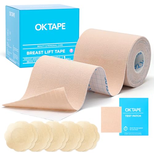 OK TAPE Bröst självhäftande tejp Boob Tapes BH tejp för kläder tejp med 5 par bröstvårtsskydd set osynligt band för kläder, Beige-7,5 cm, S-7XL / 7G