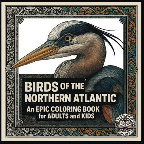 BIRDS OF THE NORTHERN ATLANTIC: An EPIC Coloring Book for Adults and Kids | Black and Grayscale Line Art | Volume One