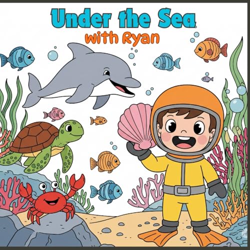 Under the Sea with Ryan Kids Coloring Book: Fun Ocean Animals and Underwater Adventures for Kids Ages 3–9 | 50+ Bold Outline Pages of Fun Sea ... Turtles, Mermaid | Large 8.5 x 8.5 Format