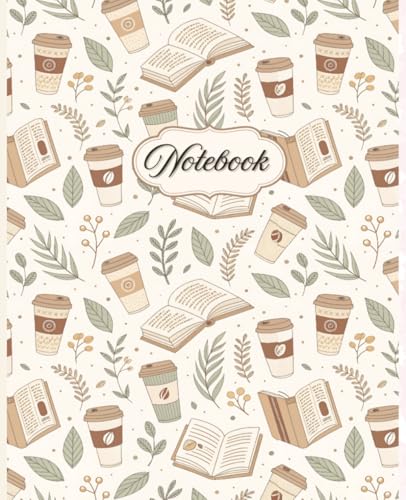 Composition Notebook: College Ruled | 150 Pages | 7.5 x 9.25" | Creative Writing | School Notes | Journaling | Note Taking | Homeschool Notes | Books and Coffee Design