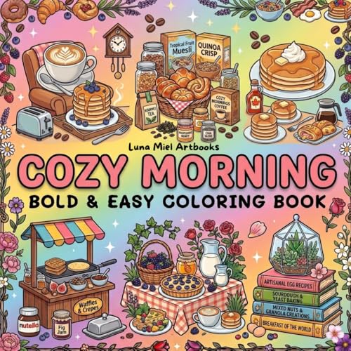 Dreamy Cozy Worlds Vol. 2 – Cozy Mornings: Bold and easy Coloring Book for Adults and teens with Cats, Coffee, Books, and Gentle Morning Scenes for Mindful Calm and Stress Relief