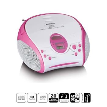 Lenco Boombox med CD-spelare FM-radio och klistermärken Rosa