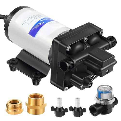 JUIYU Nedsänkbar pumplyft max 20 m DC mikromembranpump 12 V 24 V 120 W 35 PSI bevattning RV bil vattenförsörjning booster pump FL-34 FL-35 överföringspump (storlek: 12 V)