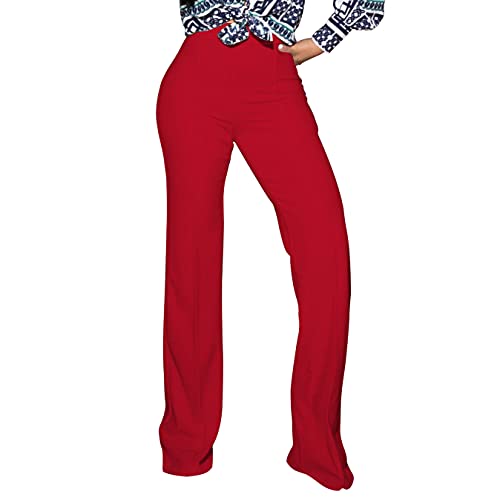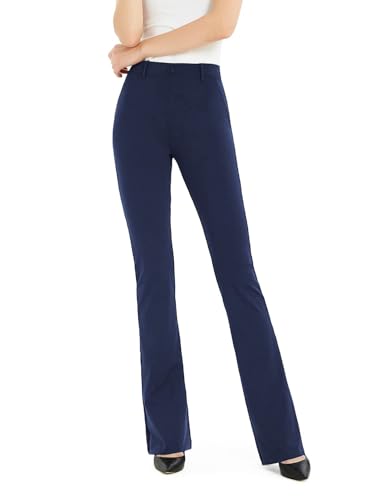PINSV Kostymbyxor för dam med hög midja, stretchig, bootcut, dra på-byxor för jobb och vardag, L