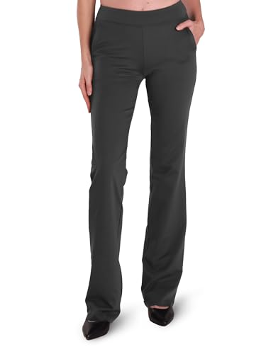 PINSV Kostymbyxor för dam med hög midja, stretchig, bootcut, dra på-byxor för jobb och vardag, M